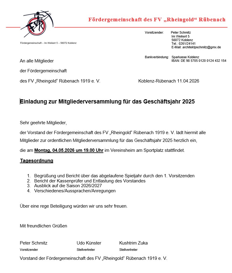 Einladung zur Mitgliederversammlung für das Geschäftsjahr 2025